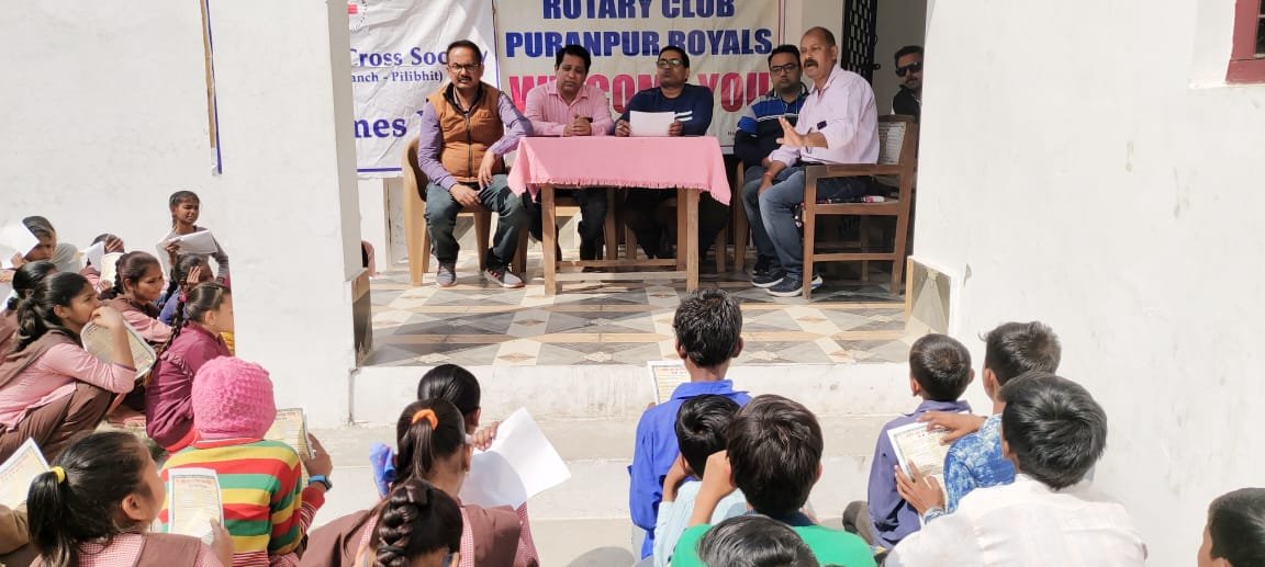 पूरनपुर। आज रोटरी क्लब पूरनपुर रॉयल्स एवं इन्डियन रेड क्रॉस सोसाइटी शाखा पूरनपुर पीलीभीत ने संयुक्त रूप से उच्च प्राथमिक विद्यालय पूरनपुर में टीवी से ग्रसित बीमार लोगों के लिए रोगी खोजी अभियान के अंतर्गत बच्चों को टीवी के लक्षण एवं उनके बचाव की जानकारी प्रदान करवाई।